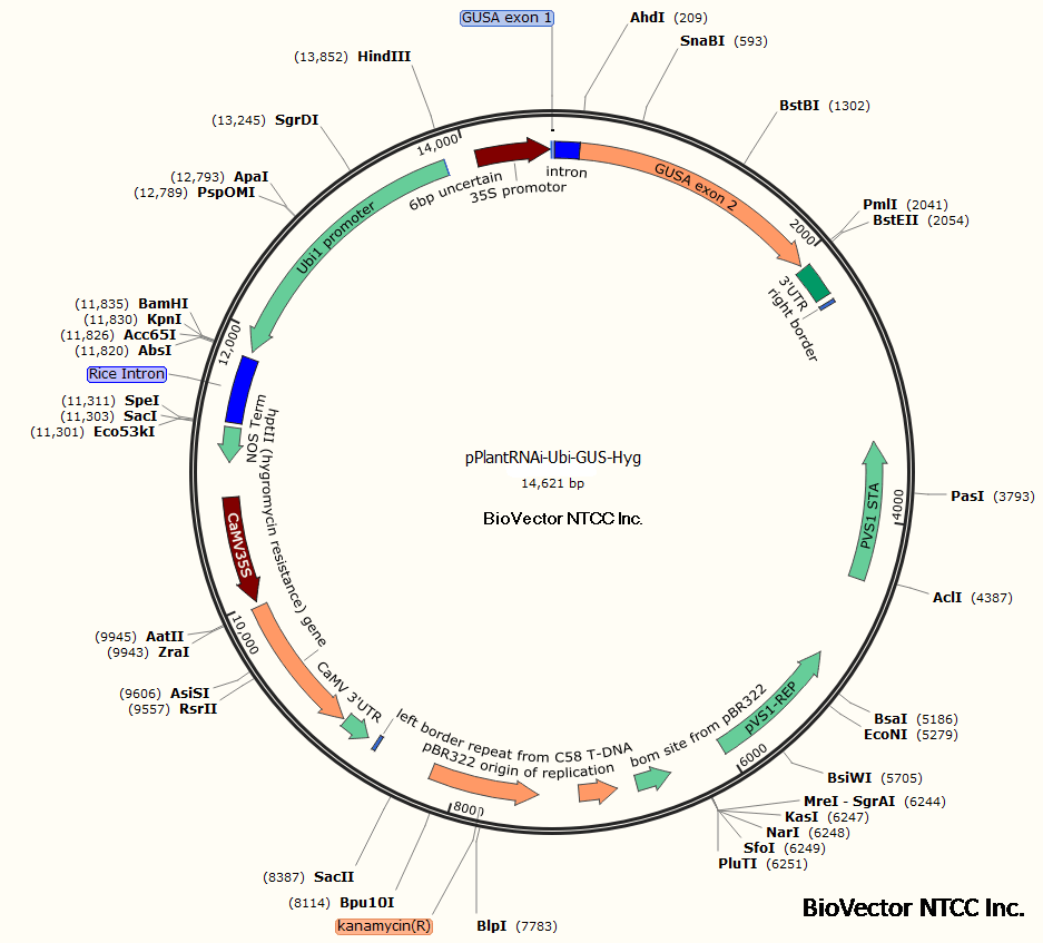 pPlantRNAi-Ubi-GUS-Hyg植物基因沉默RNAi载体单子叶植物-BioVector NTCC质粒载体菌种细胞基因保藏中心