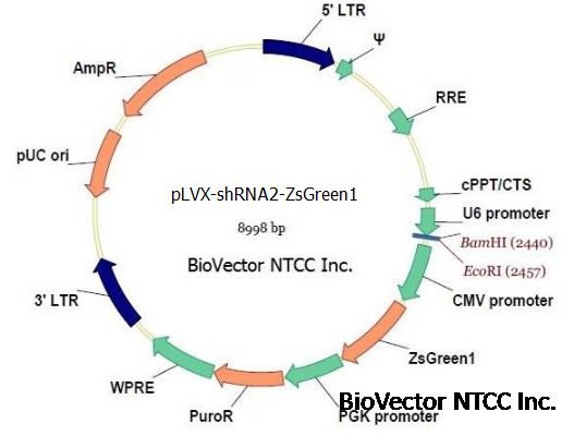 plvx-shrna2-zsgreen1慢病毒荧光基因干扰载体shRNA表达质粒 BioVector NTCC质粒载体菌种细胞基因保藏中心