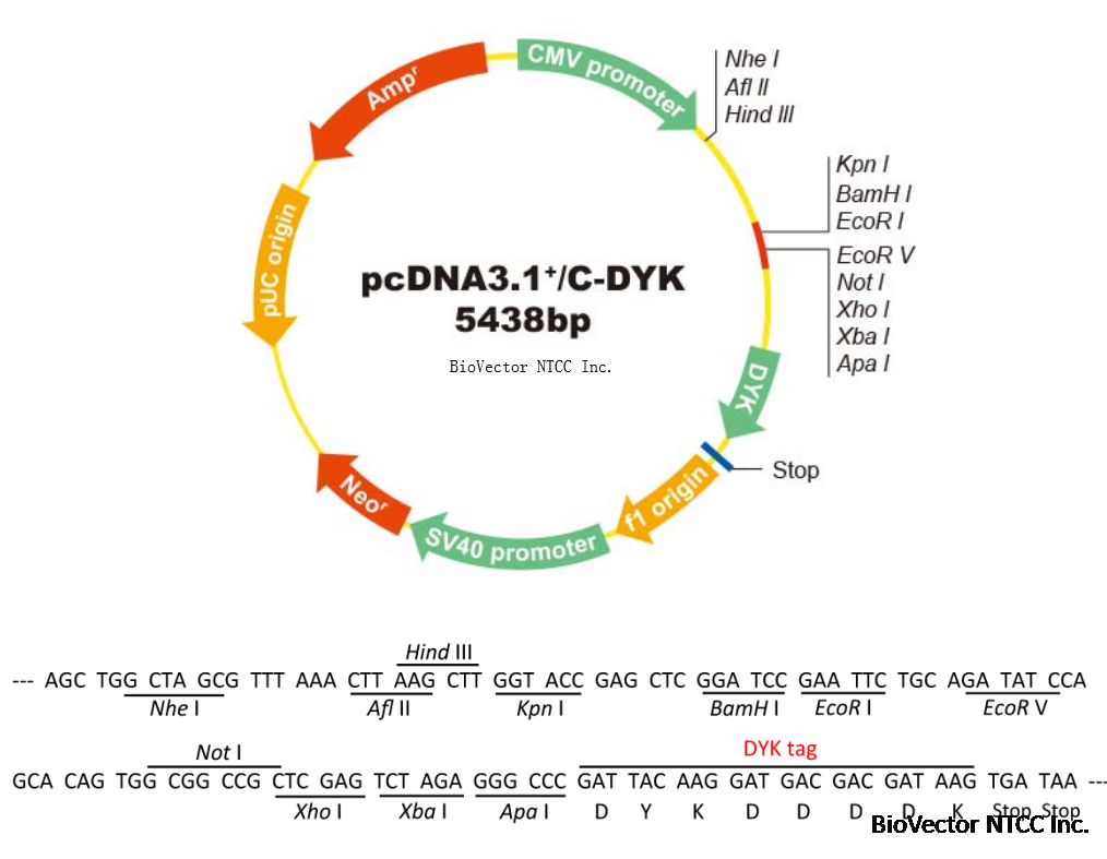 pcDNA3.1+-C-DYK哺乳动物细胞表达载体 BioVector NTCC质粒载体菌种细胞基因保藏中心