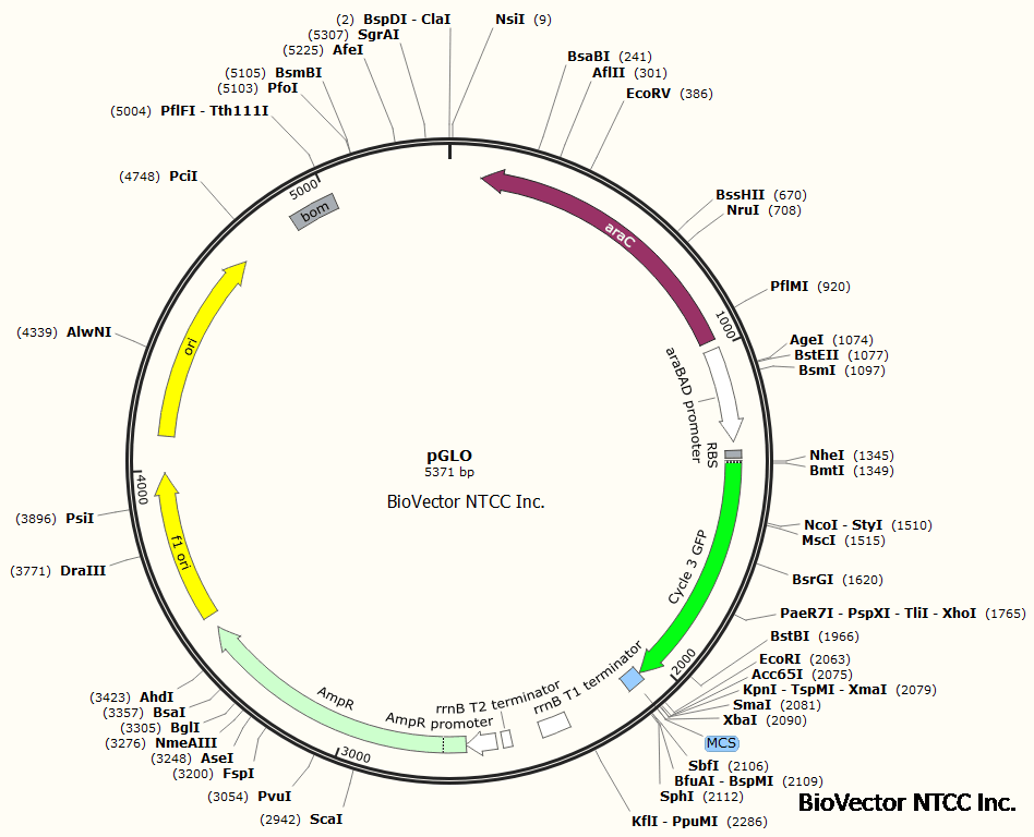 首页 » pGLO原核绿色荧光表达载体阿拉伯糖诱导表达 BioVector NTCC中国质粒载体菌种细胞基因保藏中心