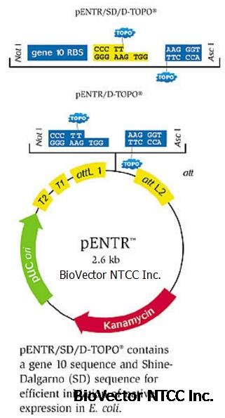 PENTR/D-TOPO,PENTR/SD/D-TOPO克隆载体 BioVector NTCC中国质粒载体菌种细胞基因保藏中心