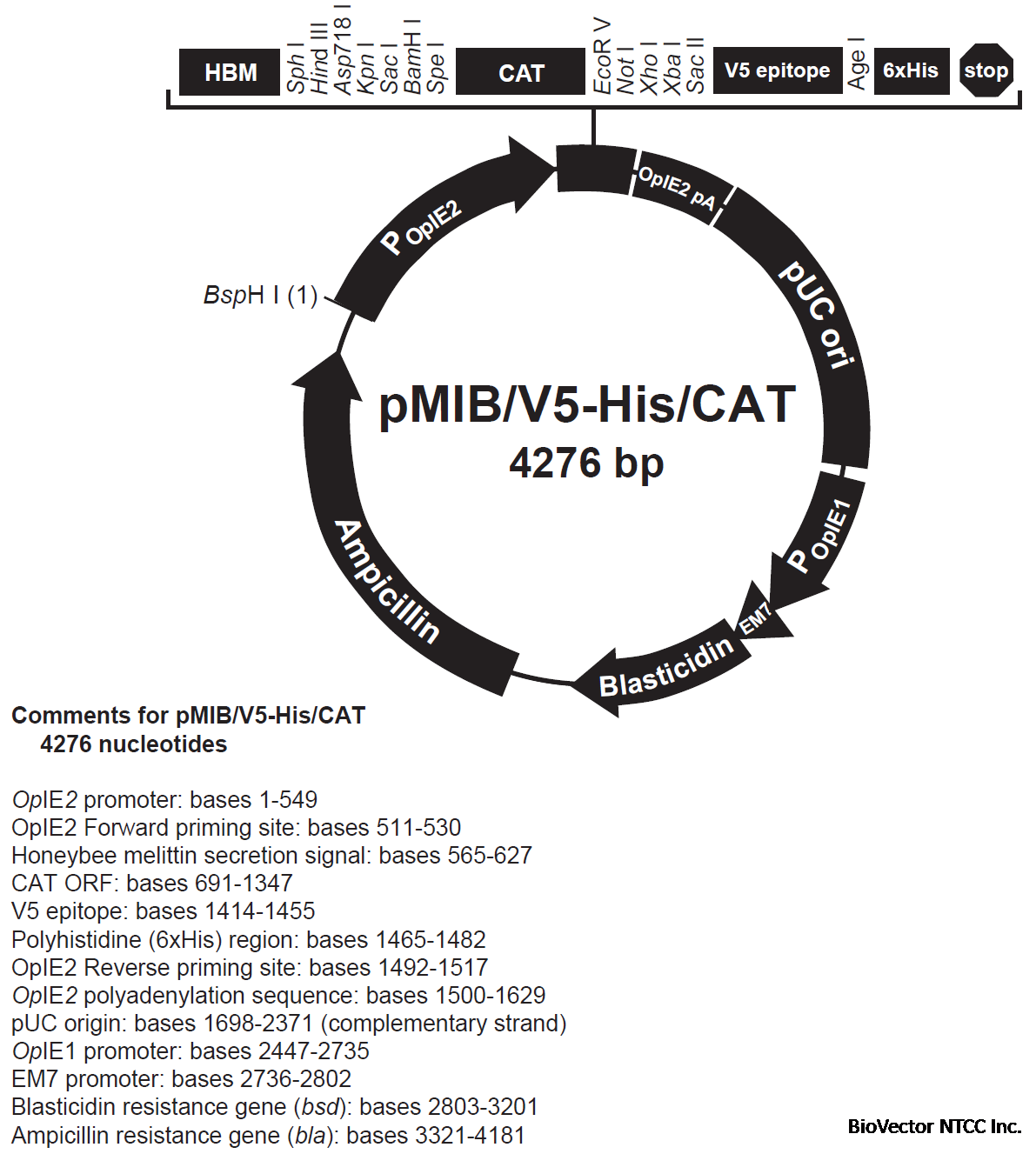 pMIB/V5-His/CAT昆虫细胞表达载体 BioVector NTCC中国质粒载体菌种细胞基因保藏中心