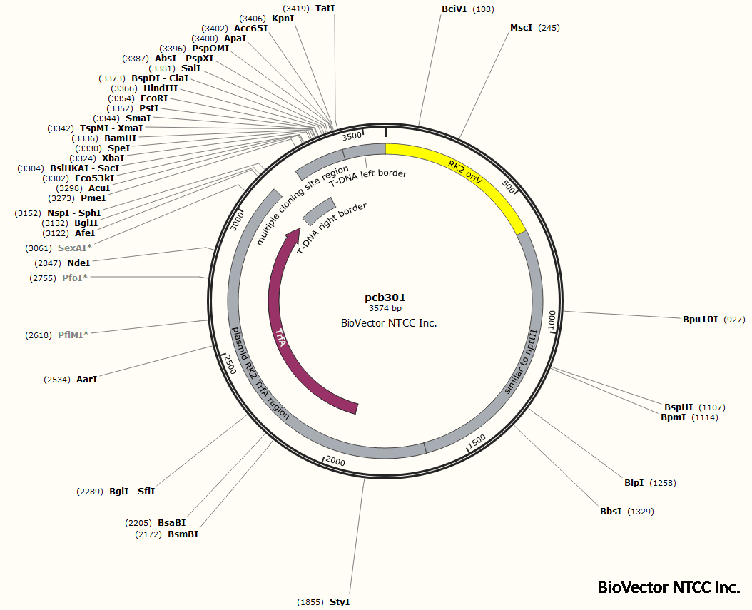 您正在向 biovector.net 发送关于产品 pCB301植物表达载体 BioVector NTCC中国质粒载体菌种细胞基因保藏中心 的询问
