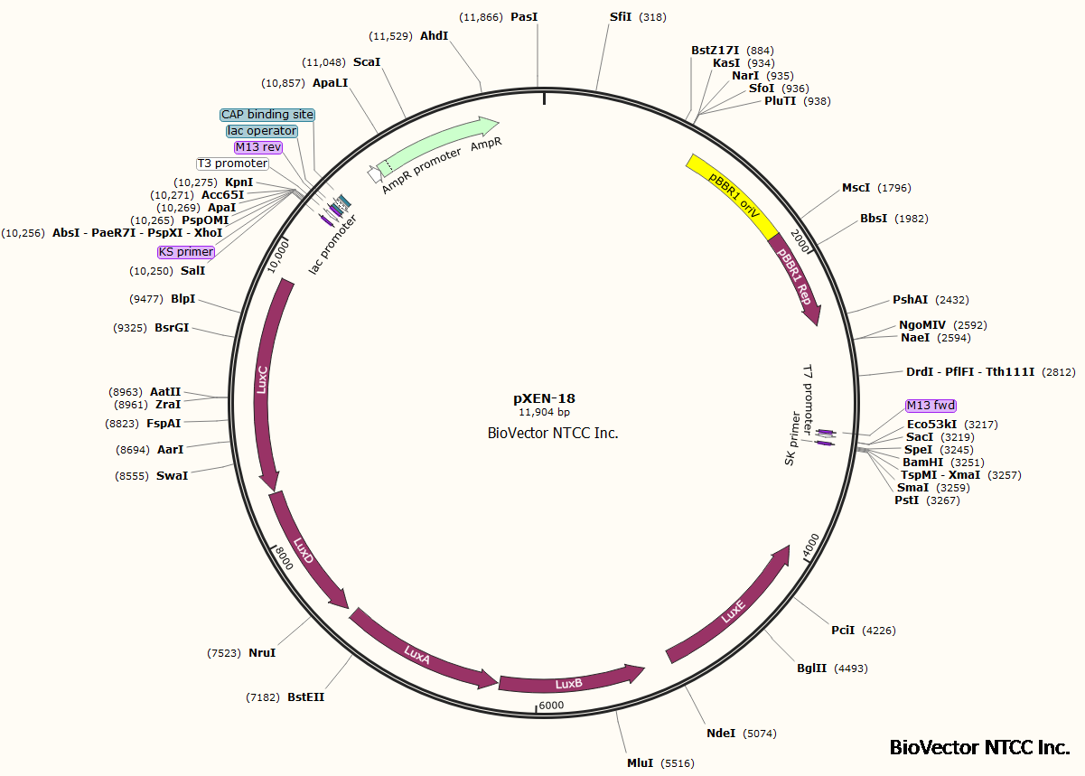pXEN-18细菌自发可见光荧光报告质粒-BioVector NTCC质粒载体菌种细胞蛋白抗体基因保藏中心