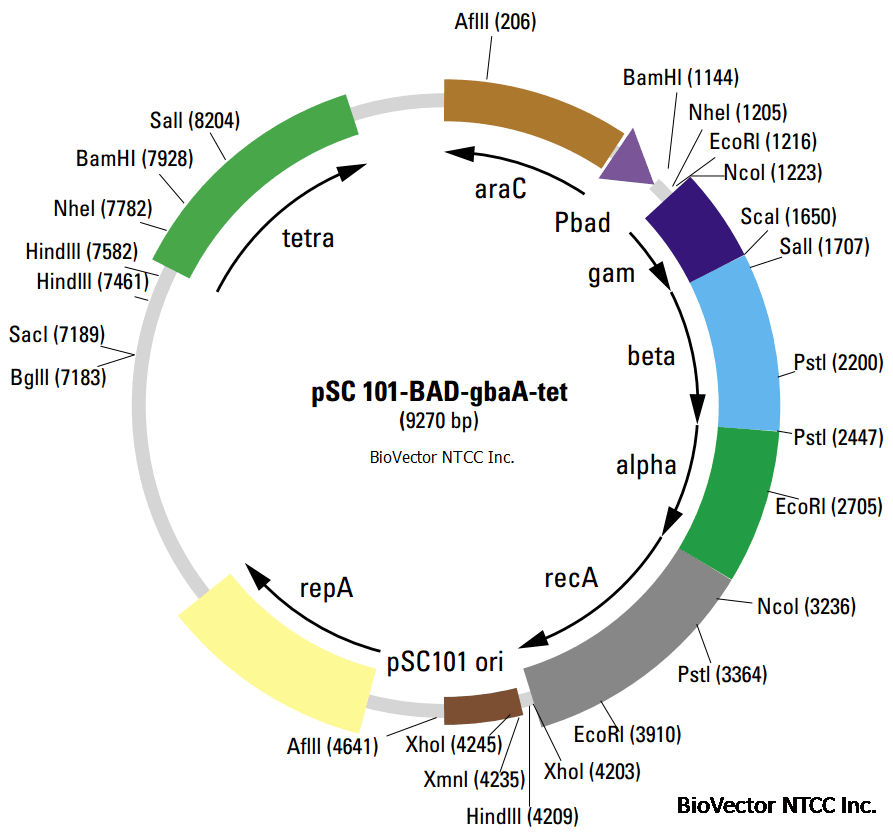 pSC101-BAD-gbaA大肠杆菌RED同源重组载体pSC101-BAD-gbaA-tet. BioVector NTCC中国质粒载体菌种细胞基因保藏中心
