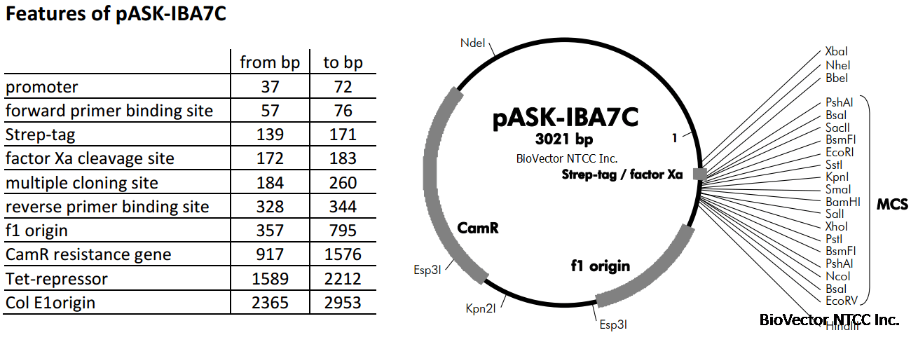 pASK-IBA7C四环素诱导表达启动子原核表达载体 BioVector NTCC中国质粒载体菌种细胞基因保藏中心