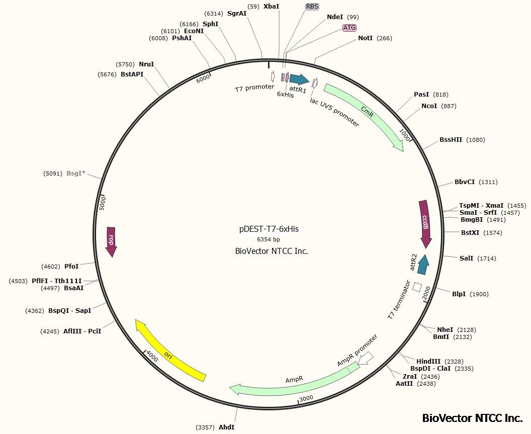 pDEST-T7-6xHis原核表达载体Gateway质粒 BioVector NTCC中国质粒载体菌种细胞基因保藏中心