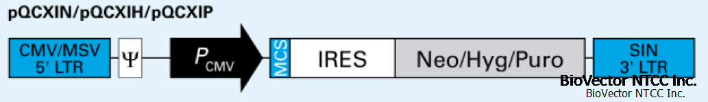 pQCXIH, pQCXIN, pQCXIP逆转录病毒表达载体 BioVector NTCC质粒载体菌种细胞基因保藏中心