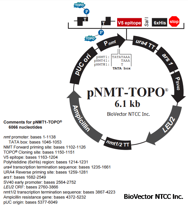 pNMT1-TOPO BioVector NTCC质粒载体菌种细胞基因保藏中心