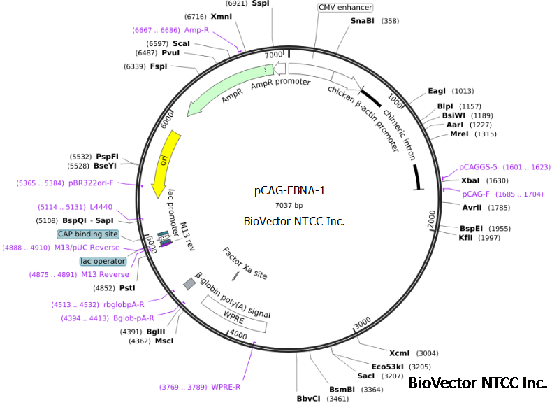 pCAG-EBNA-1非复制性附加体型EBNA1表达质粒-BioVector NTCC质粒载体菌种细胞蛋白抗体基因保藏中心