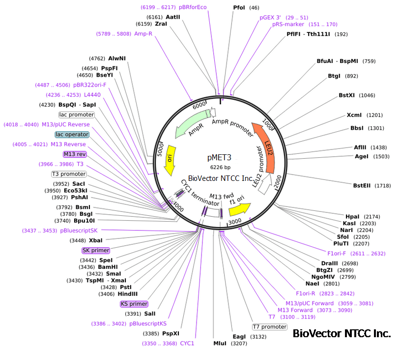 MET3启动子,CYC1终止子,LEU2酵母筛选标记,Amp抗性.
