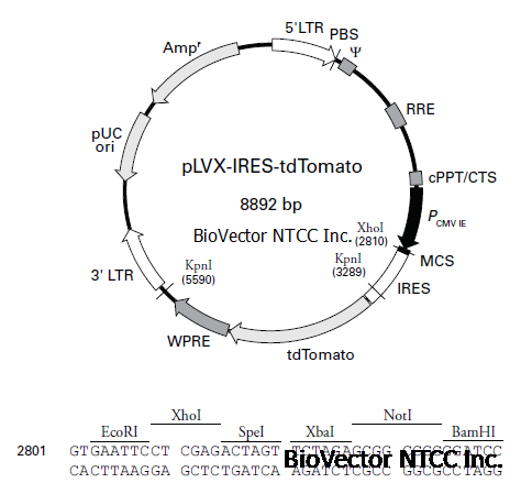 pLVX-IRES-tdTomato红色荧光慢病毒过表达载体 BioVector NTCC质粒载体菌种细胞基因保藏中心