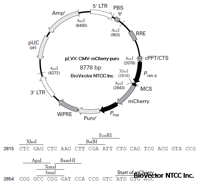pLVX-CMV-mCherry-puro慢病毒红色荧光过表达载体 BioVector NTCC质粒载体菌种细胞基因保藏中心