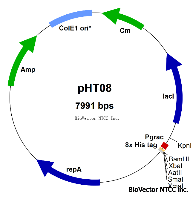 pHT08枯草芽孢杆菌表达载体,带有Pgrac启动子和8xHis标签 BioVector NTCC质粒载体菌种细胞基因保藏中心