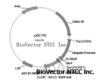 pGC-FU慢病毒荧光表达载体,Ubiquitin启动子,EGFP绿色荧光报告基因,Amp抗性。