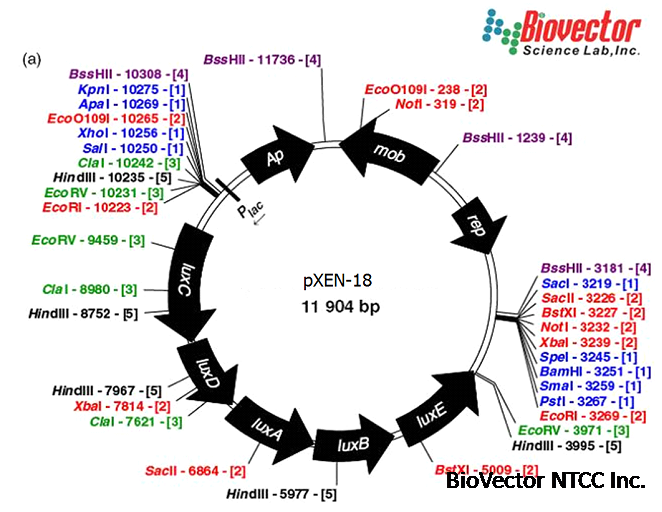 pXEN-18荧光表达载体Lux荧光质粒LuxCDABE-细菌荧光在体观察-BioVector NTCC保藏中心