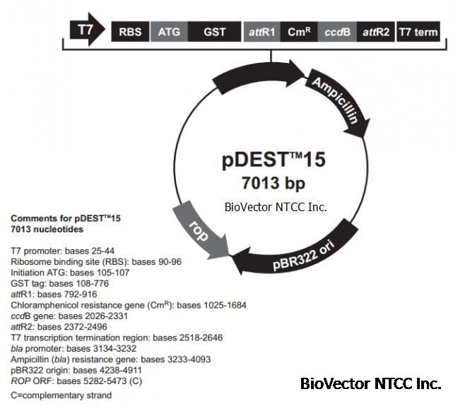 pDEST15 vector BioVector NTCC质粒载体菌种细胞蛋白抗体基因保藏中心