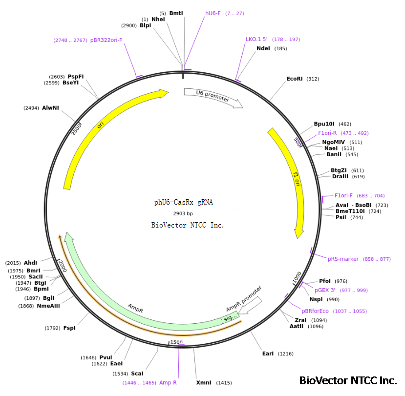 phU6-CasRx gRNA转录组RNA靶向编辑系统gRNA表达载体 BioVector NTCC质粒载体菌种细胞基因保藏中心