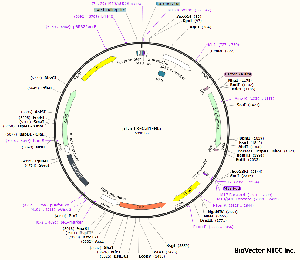 pLacT3-GAL1-Bla大肠杆菌-酵母双系统β-内酰胺酶表达质粒 BioVector NTCC质粒载体菌种细胞基因保藏中心