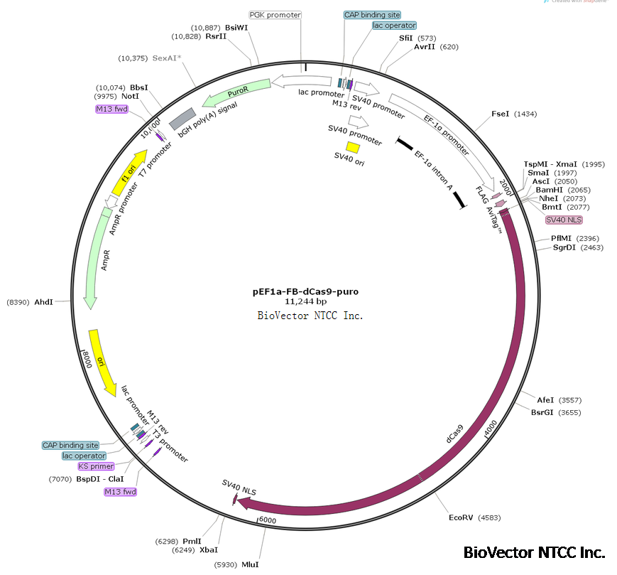 pEF1a-FB-dCas9-puro生物素亲和型CRISPR调控元件抓取质粒 BioVector NTCC质粒载体菌种细胞基因保藏中心