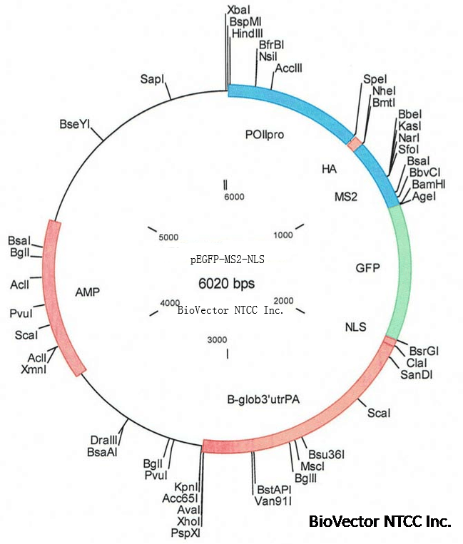 pEGFP-MS2-NLS plasmid vector质粒载体 BioVector NTCC质粒载体菌种细胞基因保藏中心