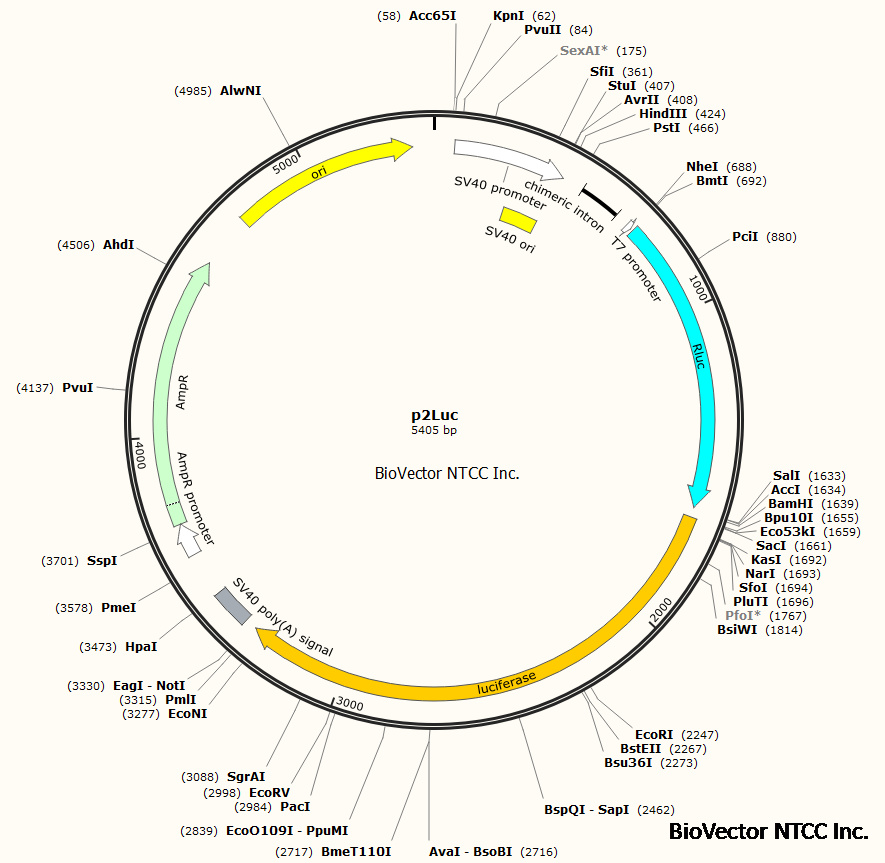 BiovectorP2LUC | p2Luc reporter vector | p2Luc, 15uL DNA. AmpR.Storage:-20℃ |