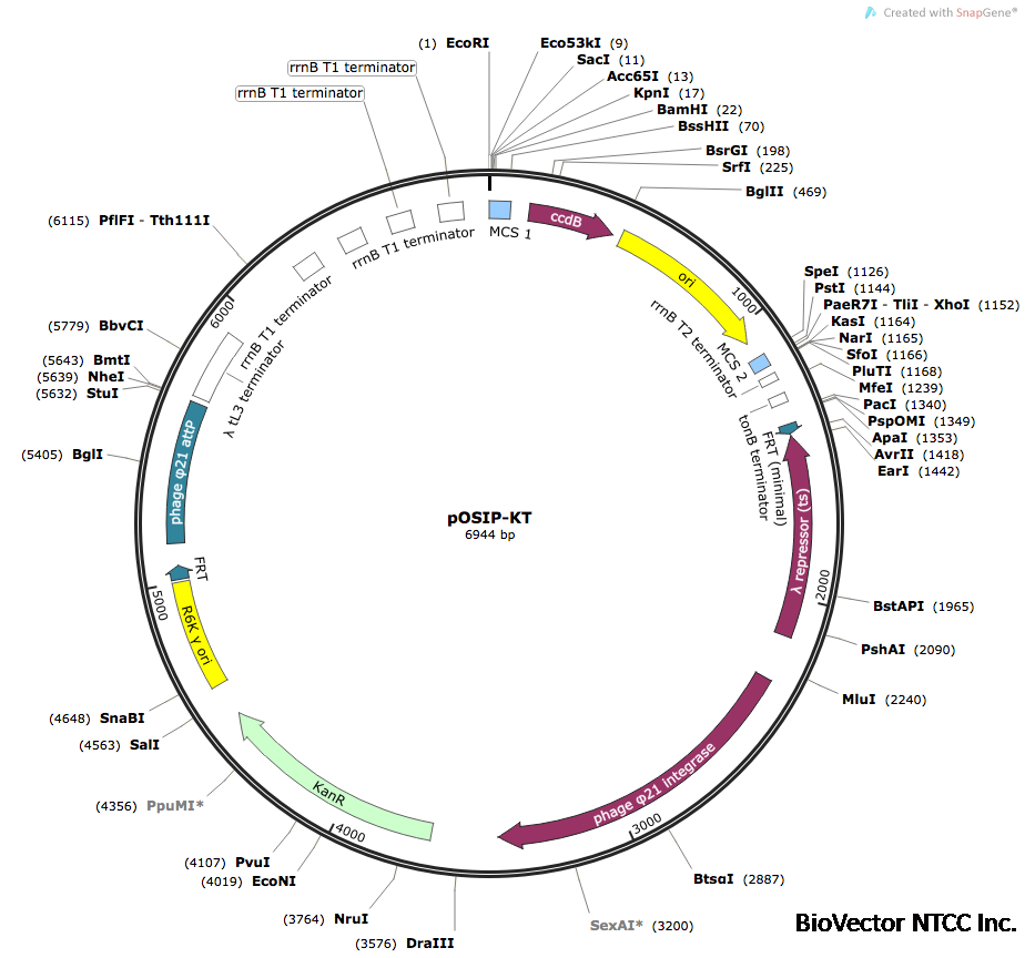 pOSIP-KT载体克隆质粒-BioVector NTCC质粒载体菌种细胞基因保藏中心