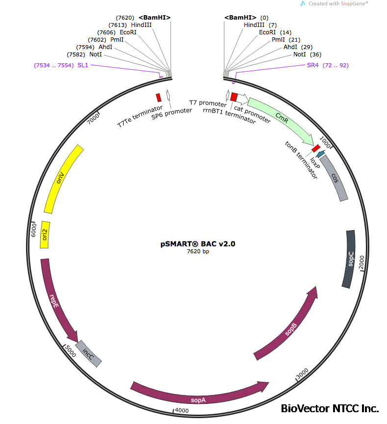pSMART BAC v2.0 (BamHI linearized)载体克隆质粒-BioVector NTCC质粒载体菌种细胞基因保藏中心