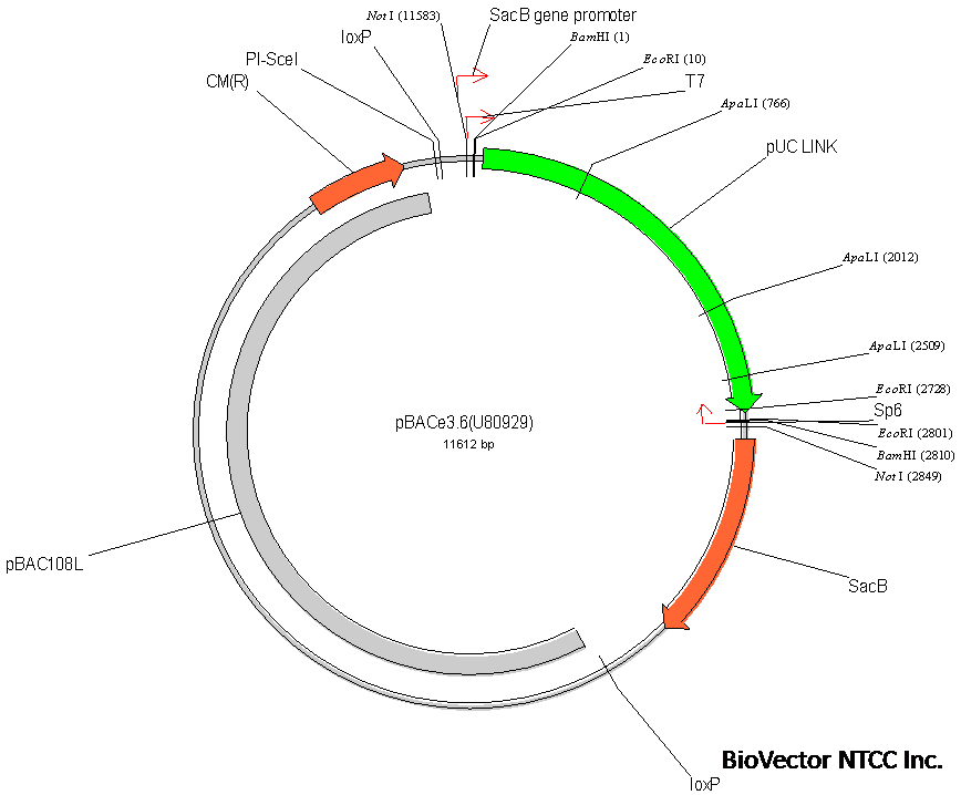pBACe3.6 BAC cloning plasmid细菌人工染色体质粒-BioVector NTCC质粒载体菌种细胞基因保藏中心