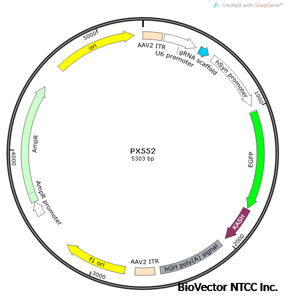 pX552 CRISPR/Cas系统,腺相关病毒载体-BioVector NTCC质粒载体菌种细胞基因保藏中心