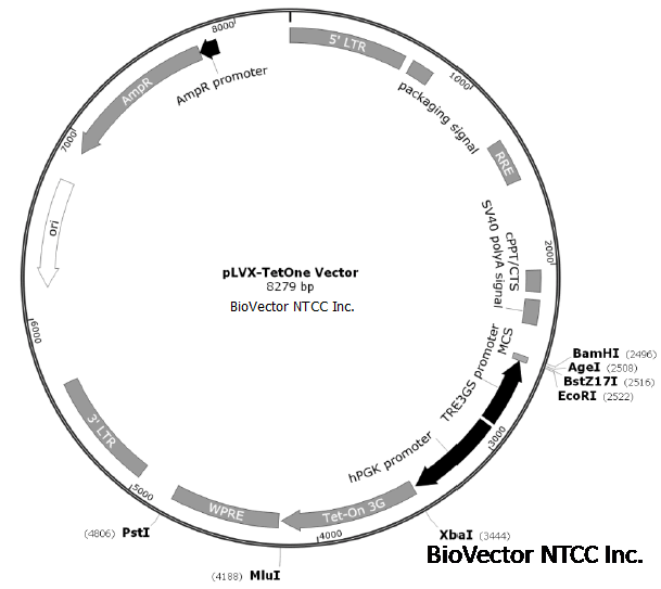 pLVX-TetOne单质粒四环素诱导慢病毒过表达载体-BioVector NTCC质粒载体菌种细胞基因保藏中心