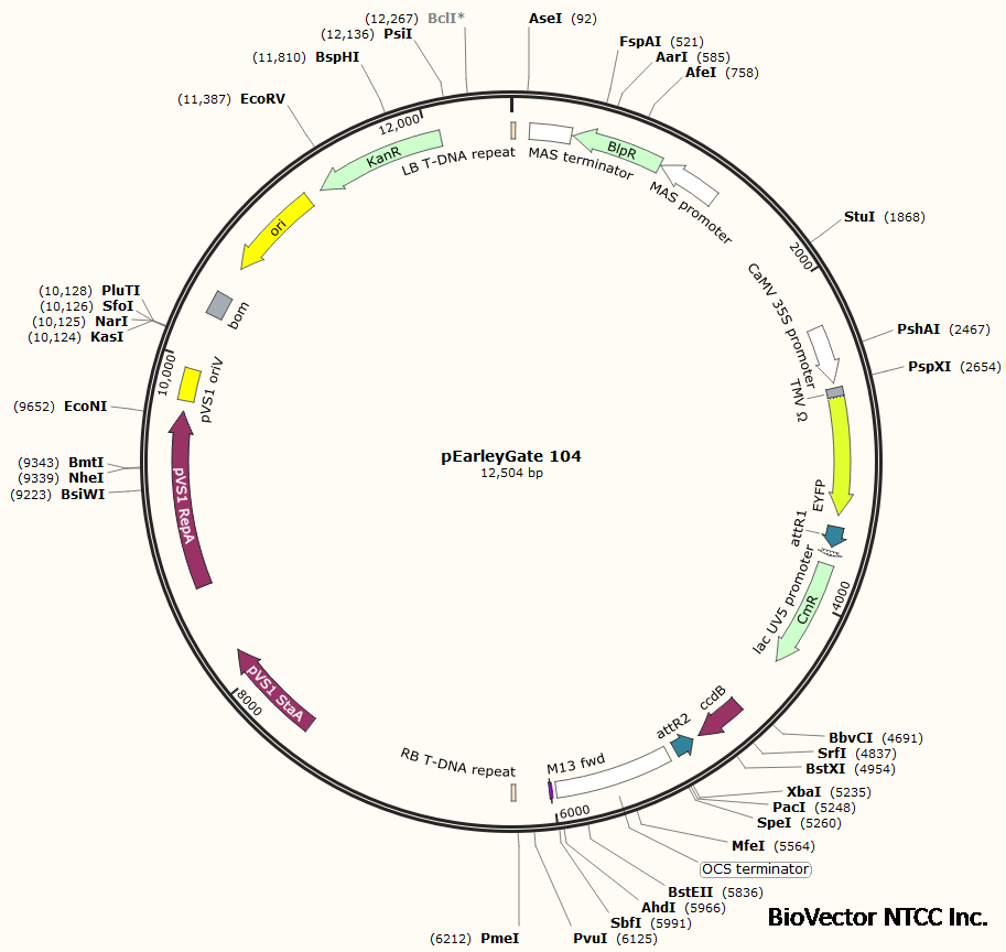 pEarleyGate 104植物黄色荧光融合过表达载体-BioVector NTCC质粒载体菌种细胞蛋白抗体基因保藏中心
