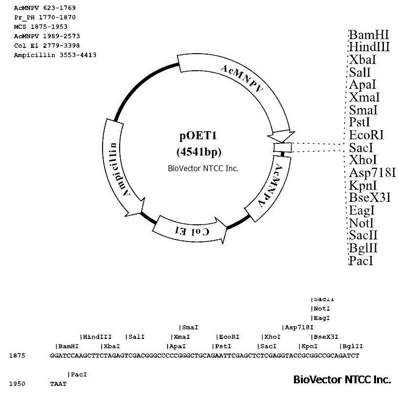 pOET1昆虫杆状病毒表达载体-BioVector NTCC质粒载体菌种细胞蛋白抗体基因保藏中心