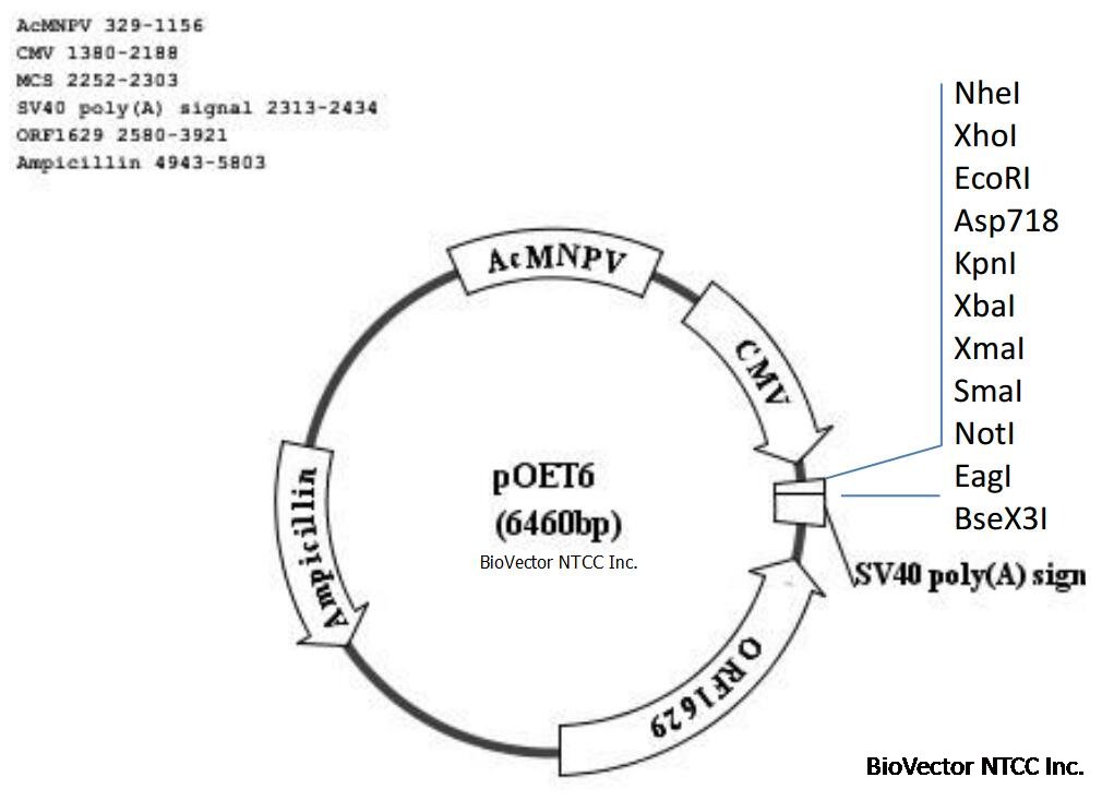 pOET6昆虫杆状病毒表达载体-BioVector NTCC质粒载体菌种细胞蛋白抗体基因保藏中心