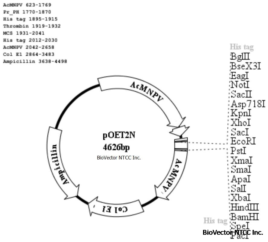 pOET2N/C_6xHis昆虫杆状病毒表达载体-BioVector NTCC质粒载体菌种细胞蛋白抗体基因保藏中心