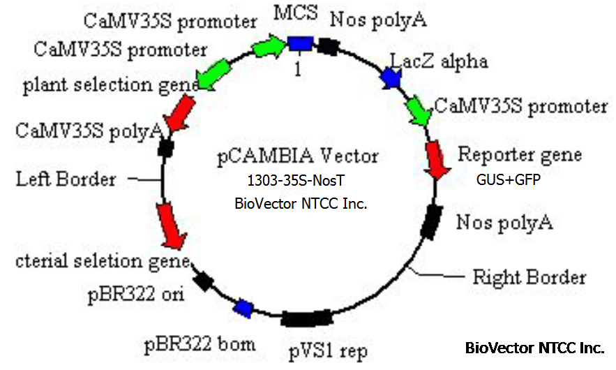 pCAMBIA1303-35S-NosT植物绿色荧光GUS标签过表达载体质粒-BioVector NTCC质粒载体菌种细胞蛋白抗体基因保藏中心
