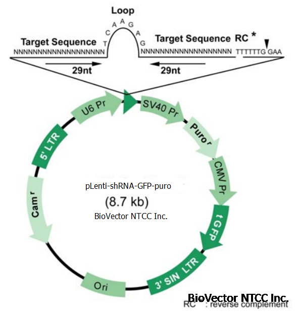 pLenti-shRNA-GFP-puro慢病毒荧光shRNA干扰载体-BioVector NTCC质粒载体菌种细胞蛋白抗体基因保藏中心