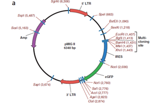 - PURPOSE(Empty Backbone) a bicistronic IRES-GFP containing retroviral vector, MCS is expanded from pMSCV-IRES-GFP